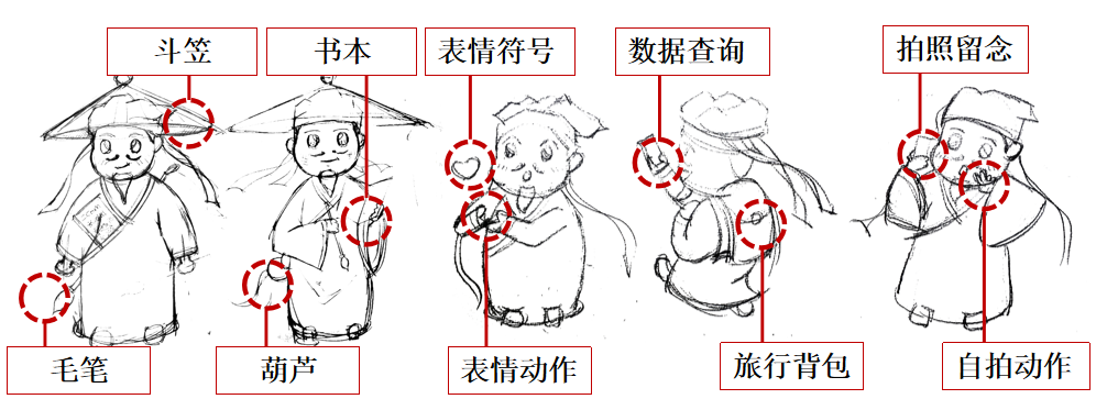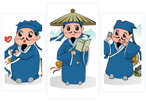 设计提取:通过运用夸张绘画手法对其形象进行设计,从而塑造成一个集幽默机智、才华横溢、文武双全、放浪江湖风度于一身的漫画形象。