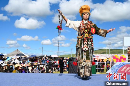 2023年8月,那曲恰青赛马节上旅游形象大使比赛。 中新社记者 赵朗 摄