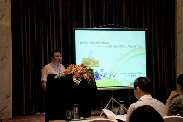 7月2日,周六,培训课程正式开始。第一讲《旅游地产价值提升系列讲座--------主题公园与房地产价值互动 》由艾肯机构董事长秦晓琪先生主讲。讲座通过丰富的数据支撑和案例分析,印证了主题公园对房地产价值的巨大提升作用,提出主题旅游地产价值提升的关键是要真心实意的做旅游。同时,对中国主题公园的现状做出了精确剖析,分析了中国主题公园存在的主要弊病并试图寻找突破口。